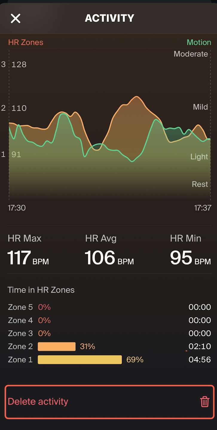 Scroll to the bottom of the screen and tap Delete Activity.