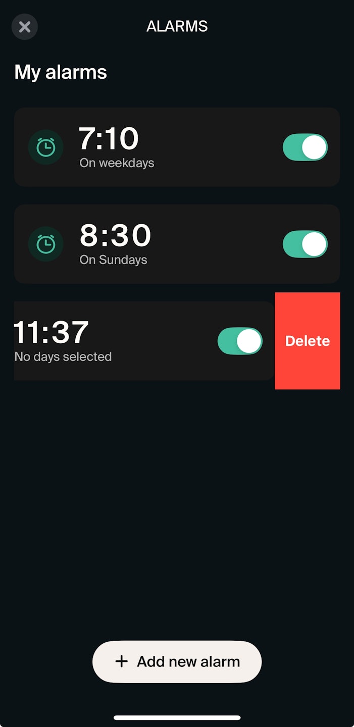 Once the alarm is deleted, you will feel two gentle vibrations confirming it has been removed.
