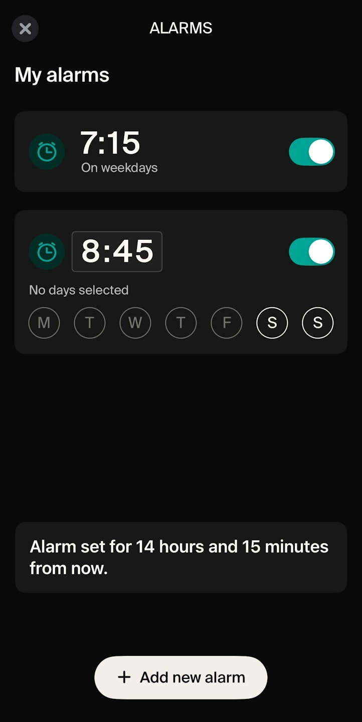 Tap the alarm time to make changes.