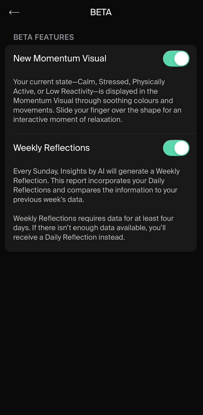 Once your request is approved, you may be required to install a custom firmware update. In the Beta Features submenu, you can enable or disable individual features.