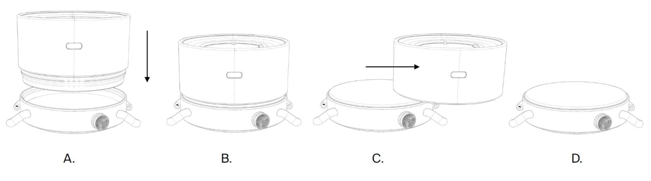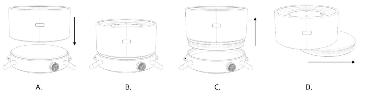 Insert the disc into the case (B), ensuring the walls of the disc and case are perfectly aligned.
