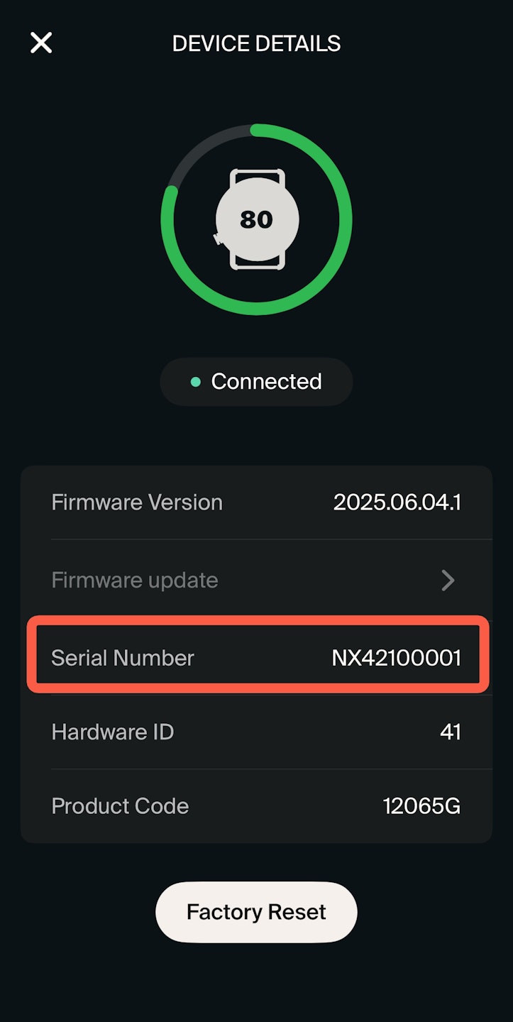 The NOWATCH serial number is a unique code assigned to your individual device. It helps our team identify your exact watch for support, warranty, or service purposes.
