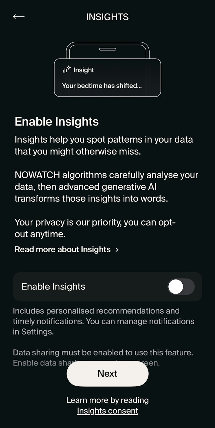 Please note that Data Sharing is necessary to enable Insights (AI features). Additionally, when you enable Data Sharing, you can easily restore your backed-up data after deleting and reinstalling the app (iOS only).