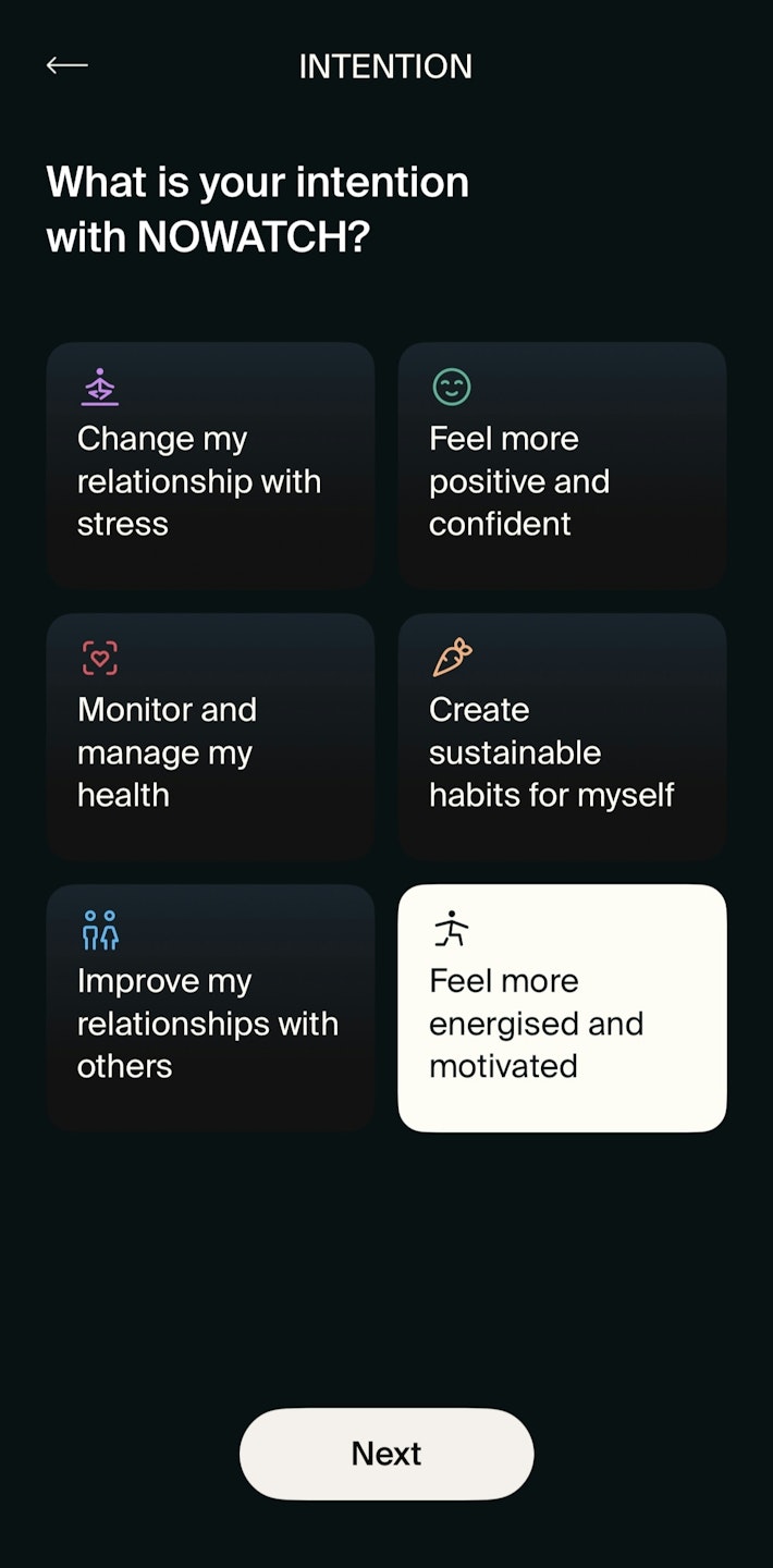 After completing your personal information, let us know what is your intention with NOWATCH.