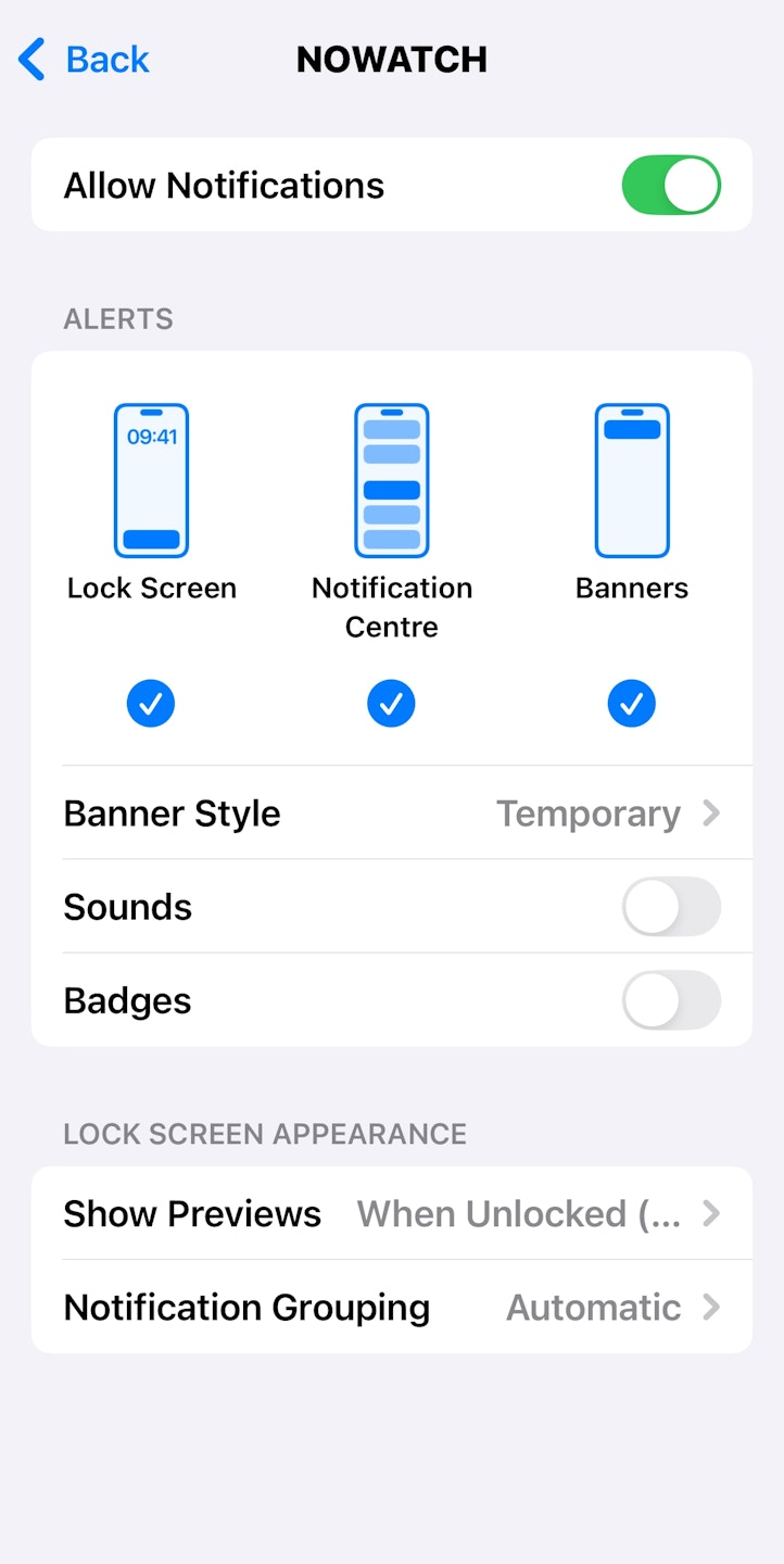 You're all set! Go ahead and explore the app’s various screens to get the most out of your NOWATCH experience.