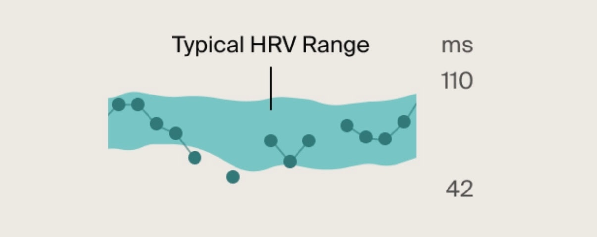 Highlighted area: This is your Typical HRV Range, your personal baseline when your body is functioning well.