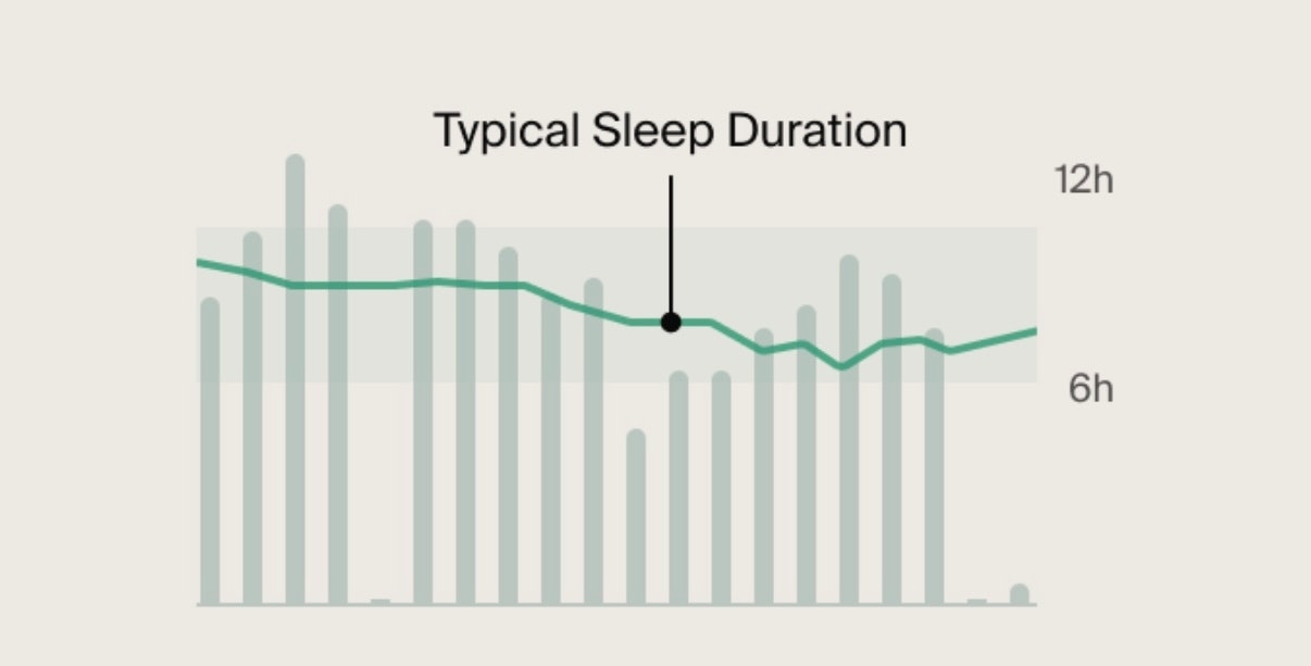 Grey bars: Represent how long you’ve slept each night. When tapping on a bar, you’ll see your Typical on the left and your Sleep Duration on the right.
