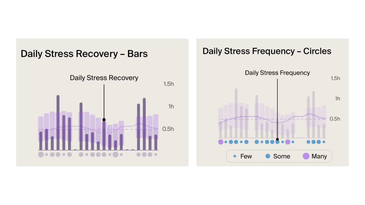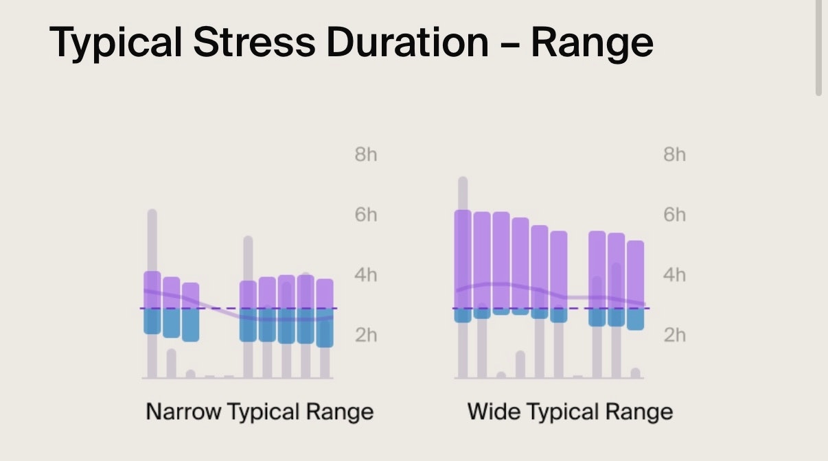 • Purple bars: Represent your Typical Range. It shows how much your Daily Stress Duration varies day-to-day.