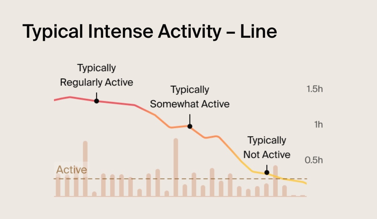 • Line: Represents your Typical Intense Activity. It helps you identify how consistent you’ve been. Here's what it shows: