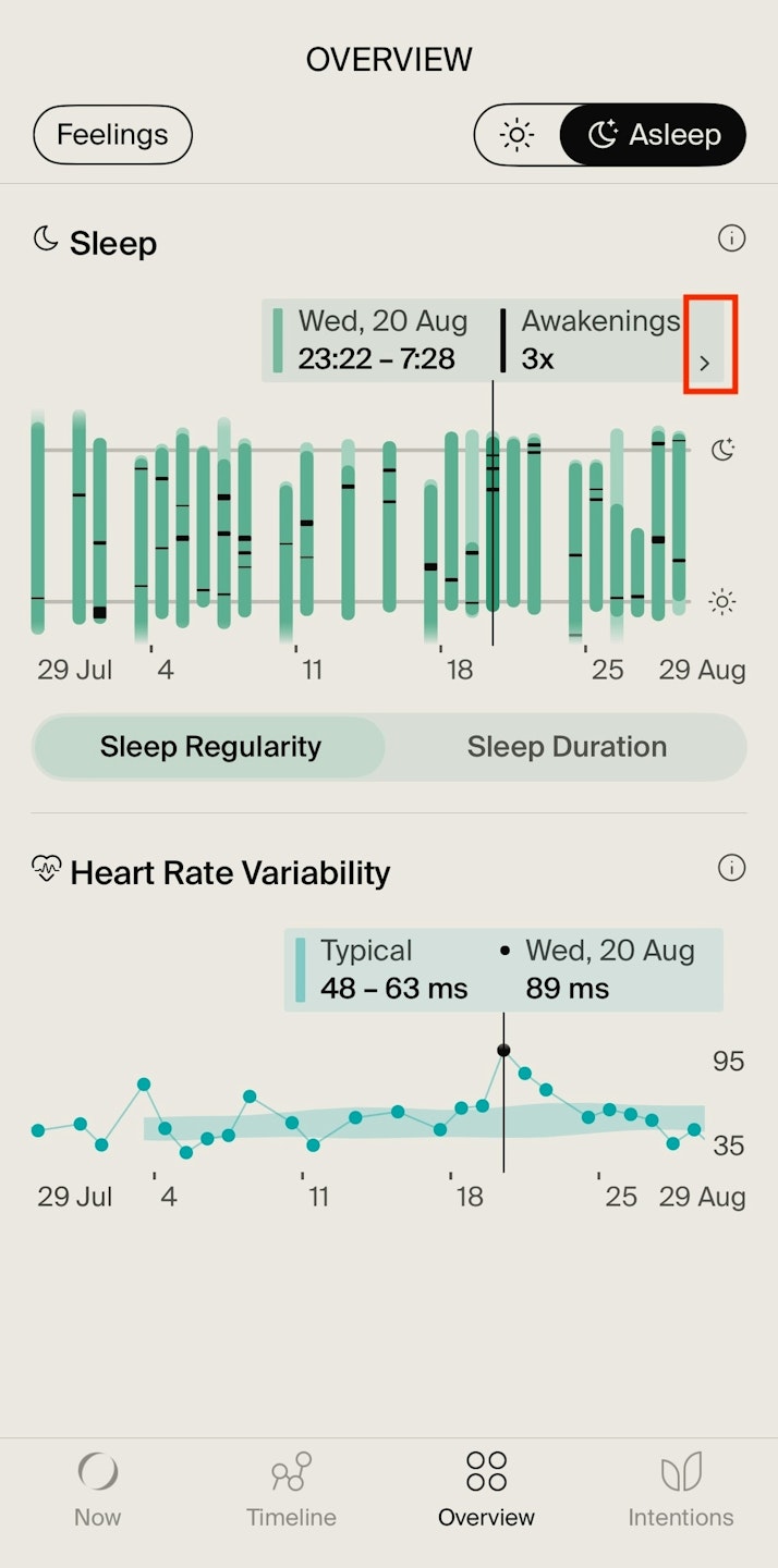 4. Tap the small arrow next to the date to open that night's Sleep Summary.