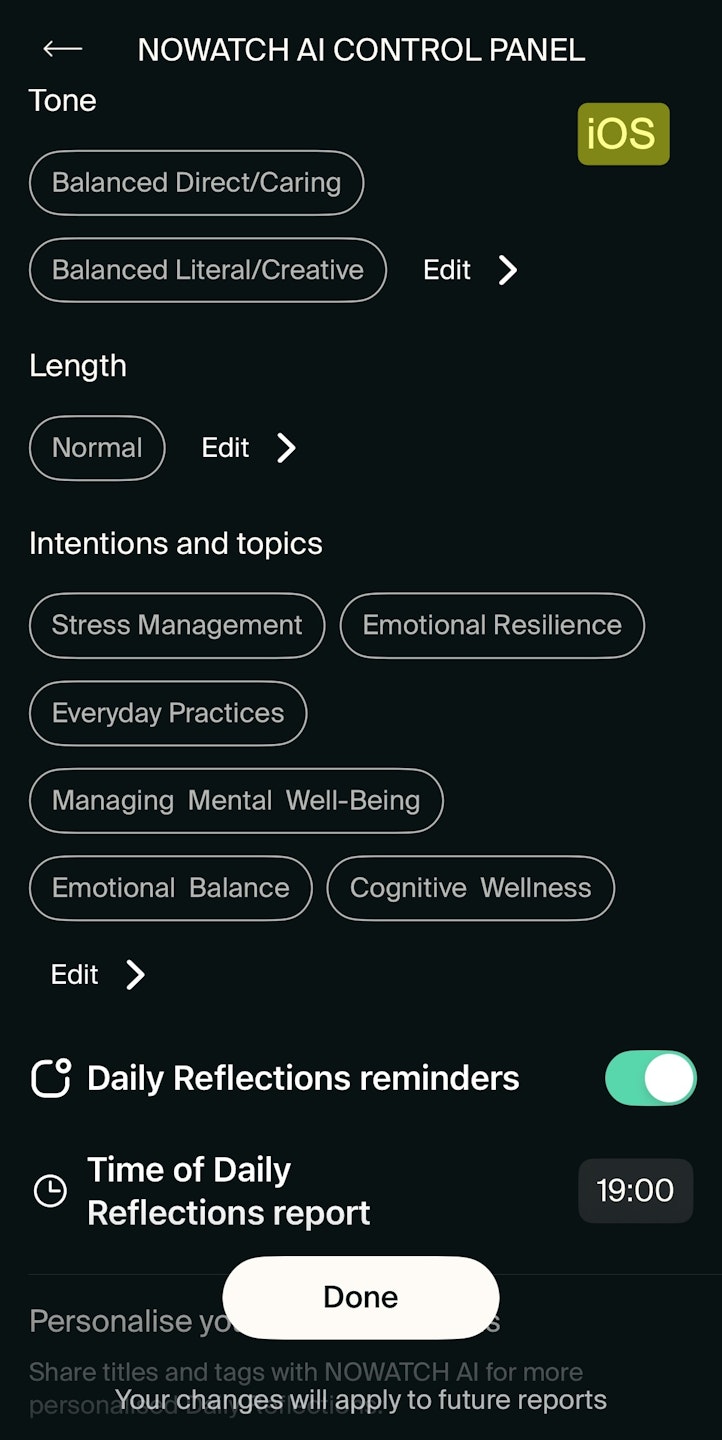 Set your preferred time to receive daily reflection reminders (iOS only)