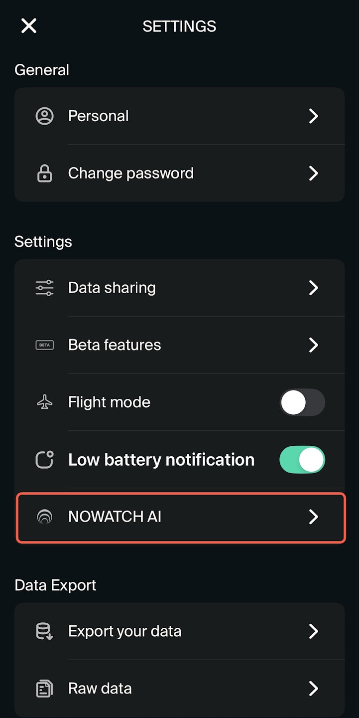 2. Select NOWATCH AI (iOS) or AI Insights (Android)