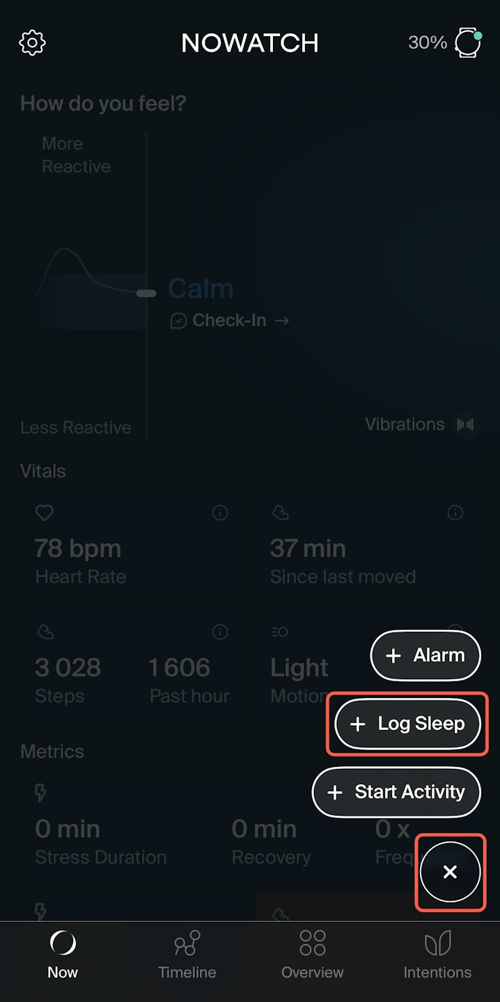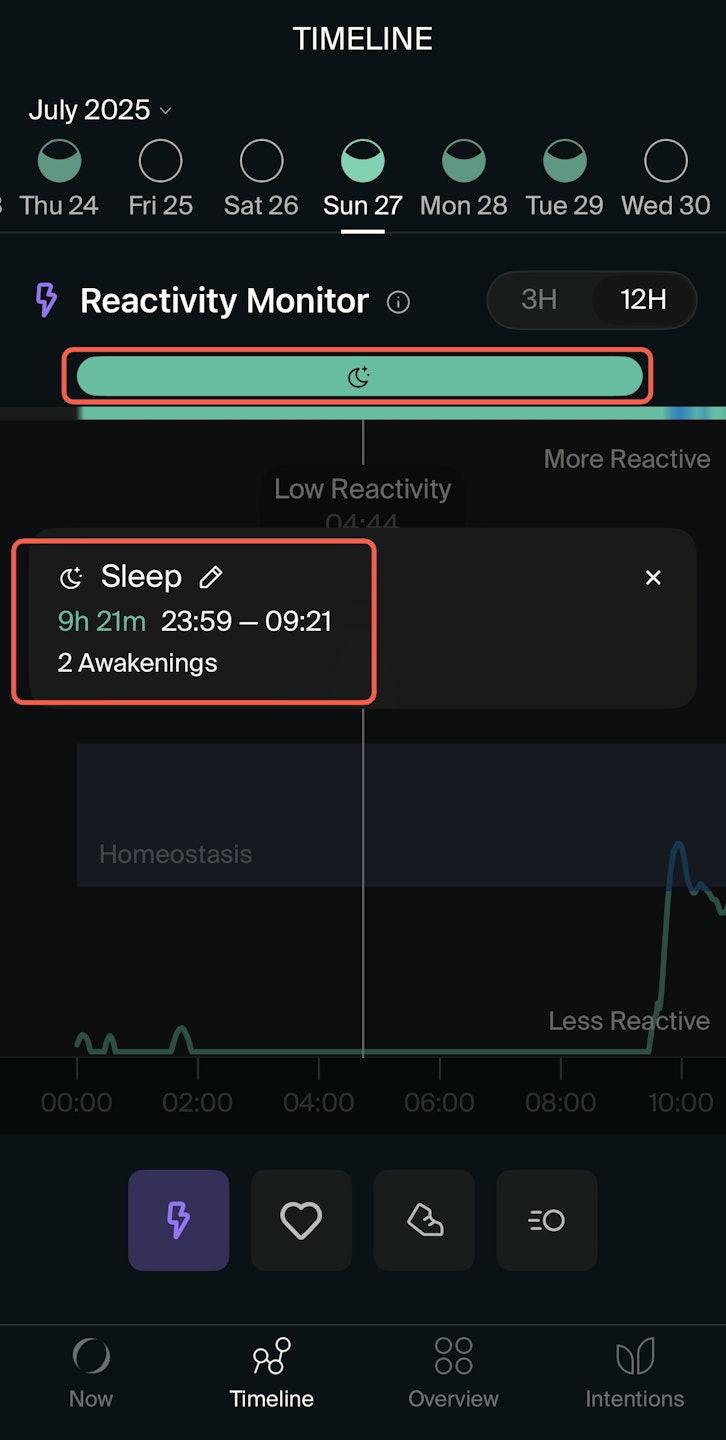 If the sleep is unconfirmed, it will appear on the Timeline with a Sleep pill.