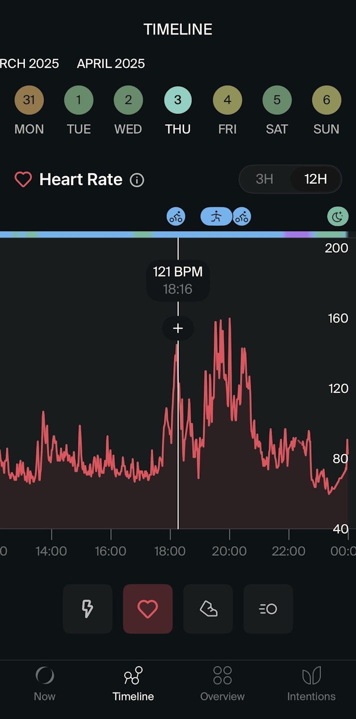 Motion (circle icon): Tap to view your motion stages (vigorous, moderate, mild, light, and rest) throughout each hour and day (iOS only).