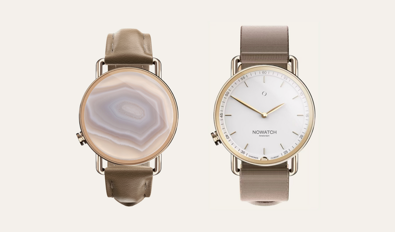 Design: NOWATCH features a screenless design with a stainless steel, waterproof case and customizable straps.